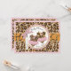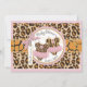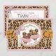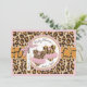 Cheetah print with pink accents and animal print tutus on clothesline with 3D-look bow and ribbon for twin girls baby shower invitation card.