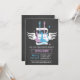 This stylish, trendy and cool baby shower invitation has a pair of lilac and blue electric guitars with a pair of white wings behind it. The banner wrapped around the guitar reads "Rock a Bye Baby Shower" which is an amusing pun twist to a classic baby lullaby. Dark grey background has a light texture design to it. On the reverse is a classic vinyl record with musical notes and stars for decorations. This invitation is perfect for any rock and roll, music or rock star theme baby shower celebration for mum to be who is expecting twins! Personalise easily with your baby shower details.