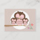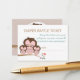 A fun game for you to include in the baby shower invitation that welcomes guests to be entered into a raffle, if they bring a package of diapers along with them to the baby shower. Cute twin baby owls in pink and their sweet Mama owl are snuggling on a tree branch in this pastel pink, white, brown colour scheme design that is perfect for a twin girl baby shower.