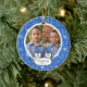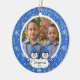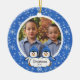 Cute twins Photo Christmas Ornaments featuring a pair of twin penguins with a blue snowflake background. Visit us at www.celebrateitornaments to view our large selection of penguin personalised ornaments and family themed ornaments.