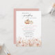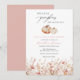 Pumpkin-themed baby shower invitation. Design features a pumpkin with pink flowers and foliage. Personalise with your information or click "Click to customise further" to edit font styles, size and colours.
