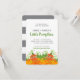 This sweet little pumpkin baby shower invitation is available in a light or dark skin tone in our shop.