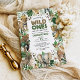 Announce your upcoming baby shower in style with our playful safari invitation! Featuring a whimsical design that perfectly captures the spirit of the jungle, this invitation is sure to impress your guests. The invitation design features a variety of wild animals, including lions, tigers, zebras, and elephants, surrounded by lush jungle tropical leaves and colourful balloons in shades of green and gold. The leopard print adds a touch of wildness and fun to the design, while the playful typography sets the tone for a joyous celebration.