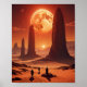 Two brilliant suns set over an endless alien desert. A surreal and colourful science fiction landscape that brings distant worlds to life.