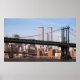 Skyline of Manhattan from East River in New York City. Manhattan and Brooklyn Bridges. Former World Trade Centre towers.
