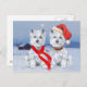 Westies out in the crisp evening - waiting for Santa. Do you hear sleigh bells? Westies love being Santa's Helper when it comes to handing out the gifts on Christmas! It is very easy to tell which ones contain dog treats!! Let your Westies be your partners with this Christmas design created from my original artwork on clothing, novelty and gift items!