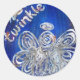 A white and silver angels rests against an indigo blue nighttime sky. A star appears to the left under the word "twinkle". Glitter on the painting gives this angel painting the magic of a shimmering twinkle. This is a great angel image to use for the holidays like Christmas or New Year's. You can personalise this angel art painting sticker with your own text and images using the "Customise It" option. Make personal guardian angel gifts!