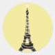An elegant Eiffel Tower covered in twinkle lights decorates this yellow sticker.