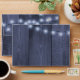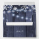Initials monogram wedding envelope with rustic strings of twinkle hanging lights on dark blue grey barn wood background and white snowflakes inside . Insert your names initials in the spot! Ideal for your winter rustic country | chic elegant | wonderland themed wedding or other occasions.