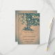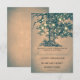 Beautiful rustic country wedding RSVP card with old oak tree and love heart initials.