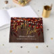 Elegant gold calligraphy script guest book featuring rustic twinkle lights, mason jar with white flowers (on back side) and rust autumn leaves on dark brown barn wood background. Ideal for your night autumn fall | elegant rustic country | outdoor backyard themed wedding.
