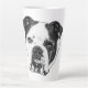 Close-up bulldog in soft manga dots for calm December mornings. Warm mug, tree-light glow, steady company.