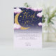 This is an adorable baby girl's first birthday thank you card based on the “Twinkle twinkle little star” nursery rhyme. The design features a cute handwritten script calligraphy font, a golden moon with gold stars and cute pink fluffy clouds in a twinkling starry night sky.