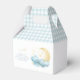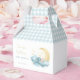 Twinkle twinkle little star theme baby boy shower thank you candy favour box with gold moon and stars and blue sleeping baby boy.