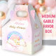 Twinkle twinkle little star rainbow girl baby shower Medium Gable Favour Boxes featuring a cute little star and rainbow on a rainbow background. Great for a precious girl baby shower party whole year round. You can choose from 3 sizes of these gable favour boxes. Easily personalise the text - Kate Eden Art