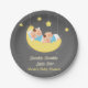Twinkle twinkle little star, what a lovely miracle you are! For twins, you have double the miracles! This cute paper plates are perfect for baby showers celebrating the arrival of twin baby boys!. The design has a crescent moon with two cute sleeping baby boys! One is resting on a pillow while the other is resting on the first's bum. How sweet! Bright strung up stars shine beautifully across the contrasting grey background. Text "Twinkle twinkle little star" cannot be edited. Personalise with short message.