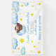 Cute little star with a friendly owl on a watercolor moon surrounded by watercolor clouds and stars.