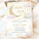 Personalise this whimsical gender reveal baby shower invitation with your own wording easily and quickly, simply press the Edit Using Design Tool button to further re-arrange and format the style and placement of the text. Featuring beautiful illustrations of a crescent moon, fluffy light pink clouds, gold stars and a "Twinkle Twinkle Little Stars How We Wonder What You Are?" heading. Also available in a digital instant download format. Under the Choose Your Format dropdown menu, please select Instant Download. For a seamless and coordinated look, explore our range of matching items available in-store. (c) The Happy Cat Studio