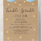 Twinkle sprinkle little star sprinkle invitation featuring cute blue clouds and golden stars on strings, on a rustic kraft background, this cute baby sprinkle invitation is perfect for all little ones who are on their way. Add your special celebration details to create the perfect invitation. It includes a book request, diaper raffle or any other cute baby sprinkle request card. Designed by Thisisnotme©