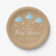 Featuring cute blue clouds and golden stars on strings, on a rustic kraft boho background, these pretty paper plates are perfect for a special baby shower, sprinkle, or couples shower. Designed by Thisisnotme©
