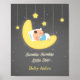 Make the baby nursery or children's room sparkle with this cute decorative piece. The design has an adorable baby boy sleeping blissfully on the crescent moon while sparkling and glittering strung up stars shine beautifully across the contrasting grey background. Personalise with child's name.