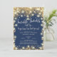 Beautiful Twinkle Little Star baby shower invitation featuring modern gold stars set on a blue background with trendy typography. Flip our boys baby shower invite over to view a coordinating back for an extra special touch.
