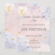 Welcome your little one with this dreamy celestial baby shower invitation featuring soft pastel watercolor clouds in pink and purple hues, gold constellations, a glowing moon, and twinkling stars. The header reads “Twinkle Twinkle Little Star” — a sweet nod to your baby’s arrival.