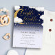 This is an adorable baby shower invitation based on the “Twinkle twinkle little star” nursery rhyme. The design features a cute handwritten script calligraphy font, a golden moon with gold stars and cute fluffy clouds in a twinkling starry night sky. This gender neutral invitation would be perfect for any mother-to-be looking to celebrate the arrival of a twinkling little star.