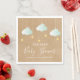 Featuring cute mint green clouds and golden stars on strings, on a rustic kraft boho background, this gender neutral baby shower, sprinkle or couples shower napkin is perfect for all little ones who are on their way.