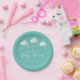 Featuring cute mint green clouds and golden stars on strings, on a neutral mint green background, this gender neutral baby shower, sprinkle or couples shower paper plate is perfect for all little ones who are on their way.