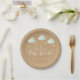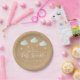 Featuring cute mint green clouds and golden stars on strings, on a rustic kraft boho background, this gender neutral baby shower, sprinkle or couples shower paper plate is perfect for all little ones who are on their way.