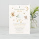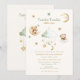 Announce your upcoming baby shower with this enchanting "Twinkle Twinkle Little Star" invitation. Featuring adorable watercolor illustrations of a sleepy bear resting on a moon and a fluffy cloud, surrounded by twinkling stars and a celestial mobile, this design captures the magic of a new arrival. The gentle color palette of soft greens, creams, and gold evokes a sense of wonder and sweetness, perfect for celebrating your little star. This invitation sets a whimsical tone for your baby shower, creating a memorable keepsake for your guests.