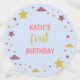 This cute and elegant twinkle twinkle little star" first birthday table confetti features a white and baby blue background with faux gold and pink glitter stars.