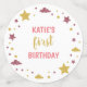 This cute and elegant twinkle twinkle little star" first birthday table confetti features a white background with faux gold and pink glitter stars.
