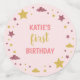 This cute and elegant twinkle twinkle little star" first birthday table confetti features a white and pink background with faux gold and pink glitter stars.