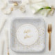 Twinkle Little Star Baby Shower party plates in silver and gold. Perfect gender neutral baby shower theme! Script and stars in a confetti frame. Wording Reads "Twinkle Twinkle Little Star - Do you know how loved you are". Easy to customise too