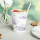 This cute "twinkle twinkle little star" gender-neutral baby shower paper cup features a white background with fluffy lavender purple clouds and faux gold stars. Personalise for your needs. You can find matching products at my store.