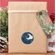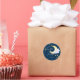 Theme Parties Twinkle Twinkle Little Star baby shower round sticker design features watercolor elements including a cute watercolor moon floating on pastel blue watercolor clouds and surrounded by yellow watercolor stars. Our baby shower sticker design is accented with tiny little stars and hand-lettered brush typography and set on navy blue background. Script accent typography is paired with modern block lettering. #BabyShower #ItsABoy