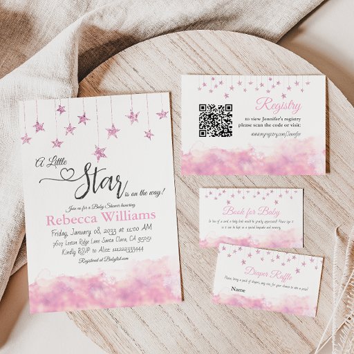 Twinkle Twinkle Little Star Pink Girl Baby Shower Invitation