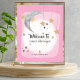 Welcome guests in celestial style with this Twinkle Twinkle Little Star Baby Shower Welcome Sign — the perfect statement piece for your baby girl celebration! Designed with a dreamy blush pink watercolor background, hand-drawn moon, and sparkling stars, this high-quality poster sign sets the tone for a magical event. Durable, lightweight, and ready to display on an easel, table, or entryway.