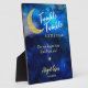 A gold glitter look crescent moon shines against a night sky with clouds revealing the stars. It says "Twinkle, twinkle, little star..." making it a great addition to a child's room but all the text can be changed as desired. Add a child's name and/or birthday on the bottom. Please note the glitter look on the moon is a printed effect and does not have real glitter. Available with matching products.