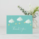 Twinkle twinkle little star thank you card, featuring white script thank you text with cute mint green clouds and golden stars on strings. You can personalise with your own thank you message on the reverse, a perfect way to say thank you! Designed by Thisisnotme©