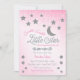 Twinkle Twinkle Little Star Baby Shower invitation By Metro-Events. This whimsical and cute baby shower invitation is an adorable baby shower theme. Created with silver glitter stars and a multi-toned pink background this twinkle twinkle little star invitation will be a great introduction for your little one! Metro-Events sweet little star baby shower design is available for both boys and girls baby showers. Additional coordinating baby shower supplies are available at Metro-Event.com and Metro-Events on Zazzle.