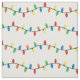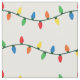 Simple rainbow coloured Christmas lights set against a snowy-white background.
