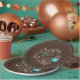 A modern Christmas paper plate design with a steaming mug of hot chocolate and a line from my original poem that reads 'twinkling lights and hot cocoa nights'. The trendy text design in turquoise, cocoa and white is highlighted by stars on a chocolate brown background. Search ID593 to see all the coordinating products for this mix n' match design set.