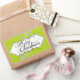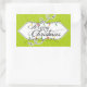 Twinkling Lights Merry Christmas holiday sticker with a green swirl design background and a white banner with text that reads Merry Christmas and some decorative strings of coloured lights. This festive holiday sticker perfectly matches the holiday photo cards, postage, and return address labels with our Twinkling Lights design.