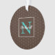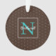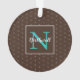 This beautiful acrylic Christmas ornament features a simple repeating pattern of a star shaped twinkling light and square central label on a chocolate brown background to hold your name and monogram. The modern colour palette makes a popular choice for Christmas gifting. Search ID594 to see all the coordinating products for this mix n' match design set.