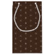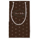 This gift bag design features a simple repeating pattern of a star-shaped twinkling light and central label on a chocolate brown background to hold your name and personal message. The modern colour palette makes a popular choice for Christmas gifting. Search ID594 to see all the coordinating products for this mix n' match design set.
