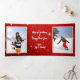 Double folded, photo Christmas card with two photos inside and text in the centre. Red colour with twinkling stars background, this card has bold white text in the centre for a greeting and signature. Upload photos to the left and right sides which are framed in white with a thin red line border. The outside has the same red stars design. This simple, traditional holiday design works for families, singles, or boyfriend / girlfriend to share photos at Christmas.