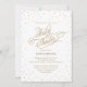 Tiny little confetti stars twinkle and sparkle in a gold glitter effect around the edge of this simple and sweet white and gold baby shower invitation, with a gold glitter effect script reading, "Baby Shower". Perfect for a chic shower! Original artwork by Colleen Michele. Please note, there is not a real gold glitter or gold leaf effect on the stars and script; no actual glitter, gold leaf or metallic ink will be used in this invitation.